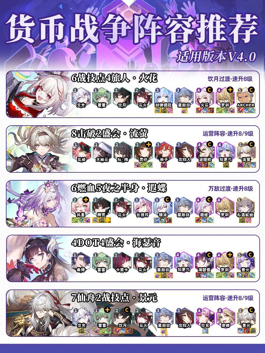 核心要点:《崩坏:星穹铁道》货币战争玩法,因大丽花等新角色加入有了新配队玩法。介绍了战技点与击破、燃血与DOT、仙舟等配队方式及强度表现,助玩家搭配出不同效果队伍。