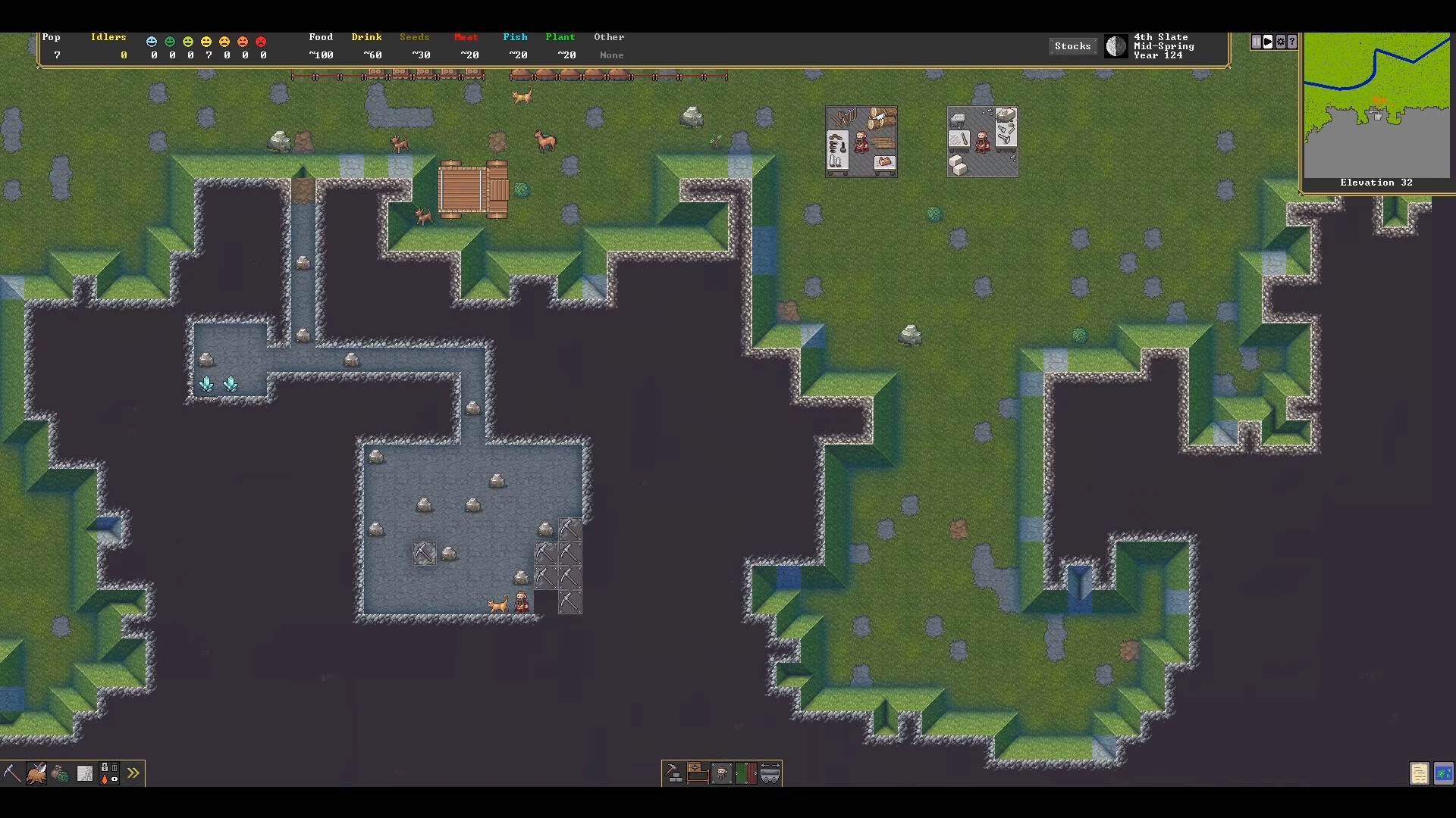 你可以指挥矮人进入山脉寻找财富,建造属于自己的矮人堡垒,需要给矮人准备稳定的食物和啤酒供应,还要满足他们的情绪需求。