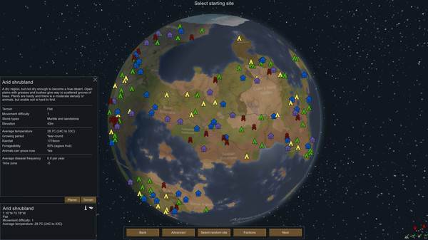 游戏生成了从极点到赤道的完整星球,你可以自由选择降落点,寒冷苔原、干旱沙漠、热带丛林都能选。