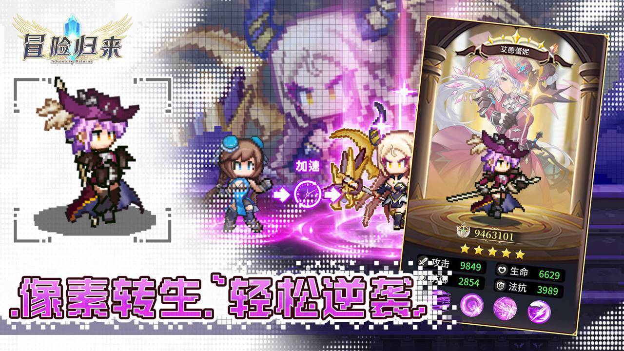 《冒险归来》是一款精致像素风格的放置类RPG手游,玩家将化身亚特兰特大陆的新星骑士,开启专属的异世冒险之旅。