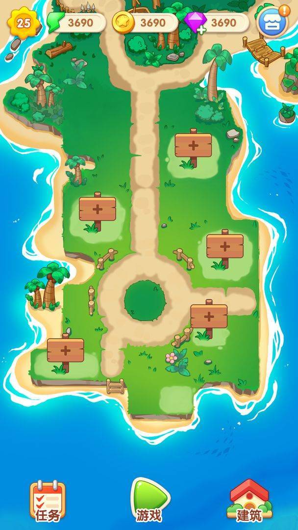 玩家要合成各式各样的海鲜来完成订单,赚取的金币能用来开发荒岛土地,建造设施还能解锁更高级的海鲜合成权限。